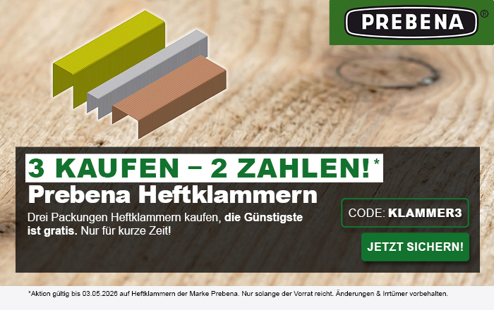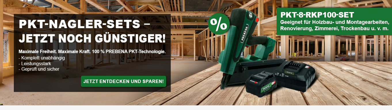 Prebena-Vertrieb bietet Ihnen ein umfangreiches Sortiment an Prebena Druckluft-Naglern, wie Coilnagler, Ankernagler, Dachpappnagler, Wellennagler, Kartuschennagler, Stauchkopfnagler oder Matritzenhefter, Kartonhefter und Handhefter, sowie die passende Befestigungstechnik, wie Heftklammern, Streifennägel, Dachpappnägel, Coilnägel, Schrauben und Ankernägel, Stauchkopfnägel/Pins/Brads und Wellennägel. Zudem umfasst das Prebena Sortiment Prebena Kompressoren, wie mobile und stationäre Kolbenkompressoren, Druckluftzubehör, wie Druckluft-Schläuche, Schlauchtrommeln oder Druckluft-Kartuschen und weitere Druckluft-Werkzeuge wie Blaspistolen und Reifenfüller.